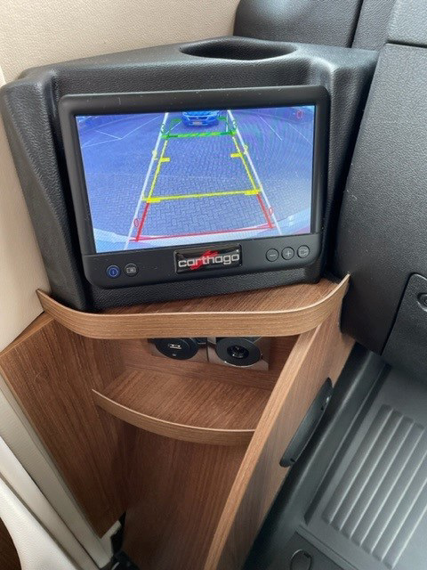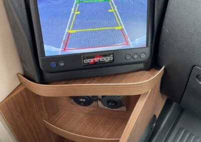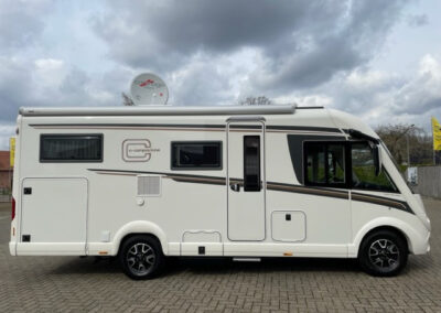 Klimatronic (automatische airco), ABS remsysteem, ESP incl ASR en Hill Holder, Traction+ incl. Hill Descent Control, cruise control, 2x airbag, GFK dakbekleding, buitenzijde wit, bekleding ‘Barcelona 21’, Chassis Pakket (bestaande uit: automatische airco, cruise control, busspiegels ‘Bestview’ elektrisch verstelbaar, in hoogte verstelbare stoelen in cabine, luxe dashboardafwerking met hoogwaardige houtapplicatie en ventilatieroosters in zilver, laadbooster, radiovoorbereiding met DAB+ dakantenne en 4x luidspreker), Comfort Pakket (bestaande uit: midi Heki dakluik, hordeur, SOG toiletontluchting, USB aansluiting boven achterbed, tv-uitschuifsysteem voor tv-kast bij zithoek), Media-Pakket (bestaande uit: radio/ dvd 2Din incl. DAB+ met touchscreen en navigatie (=extra optie. Excl. navigatie is standaard), 7″ Carthago achteruitrijcamera met dubbele lens (= extra optie. Enkele lens is standaard), 32″ LED flatscreen (=extra optie. 24″ tv is standaard)), automatische Teleco Twin schotel 65 cm, dakairco in opbouw 230v, 1x 155w zonnepaneel met Victron MPPT regelaar, Bearlock beveiliging incl. SCM certificaat, TV01 peilzender met certificaat t.b.v. verzekering, 133ltr koelkast met apart vriesvak 2-zijdig te openen, Dolce Gusto koffiecupmachine, DuoControl CS gassysteem met speciaal uitschuifsysteem voor gasflessen, luifel 4.5 mtr, 2x fietsrek (1x voor 2 fietsen in garage + 1x voor 2 fietsen achterop max 60kg), SOG toiletontluchting, 16″ lm velgen, hordeur, Premium-Two opbouwdeur met raam en 2-puntsvergrendeling, elektrisch trapje bij opbouwdeur, bestuurdersdeur met elektrische raam, elektrisch verstelbare en verwarmde spiegels, plisé verduistering in cabine, diverse USB stopcontacten, mistlampen in voorbumper, LED dagrijverlichting, 3 pits kookplaat, buitenverlichting. Hoogte 3 mtr incl. schotel en dakairco.